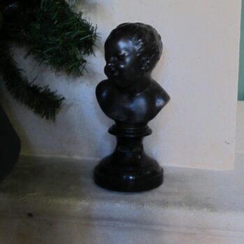 Mounted on a black stone base 5 1/4″ x 10 1/2″