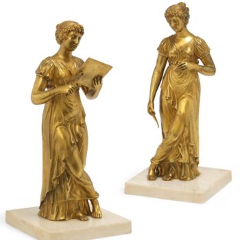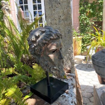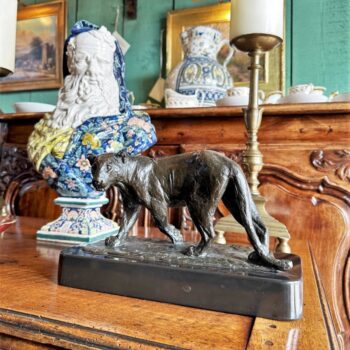 Patina with a hue of green . The movement of the Sculpture is very graceful and