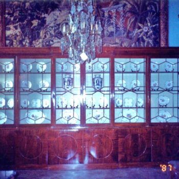 escutcheons, accented with top foliate carvings, which open to reveal two