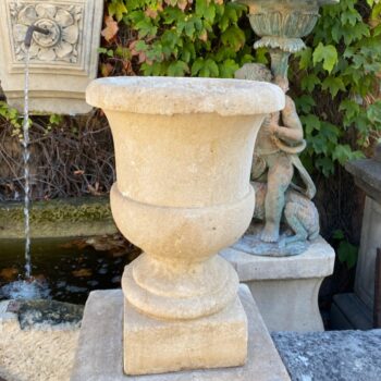 Urn jardiniere for your plants at an entrance . Minor cracks some losses and worn , as seen in the pictures . A perfect house warming gift for animal and nature lovers alike . in a Rose garden , a source of hope for wild animals during the long hot summer days if you turn it into a Basin as a birdbath.