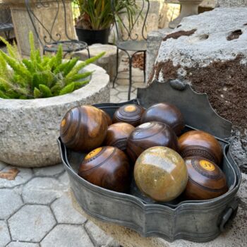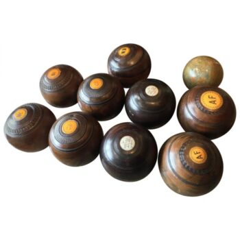 10 Carpet Lawn Bowling Hand Carved Wood & Stone Balls Antique Office Gift Idea