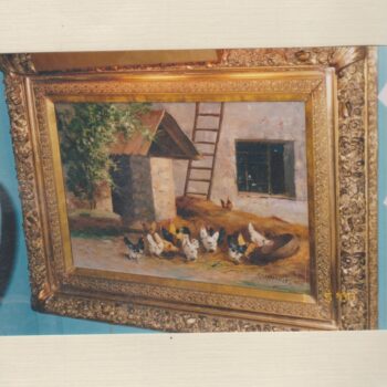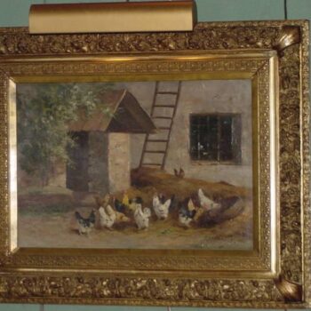 Barnyard Scene Of Chicken Frolicking In a Yard