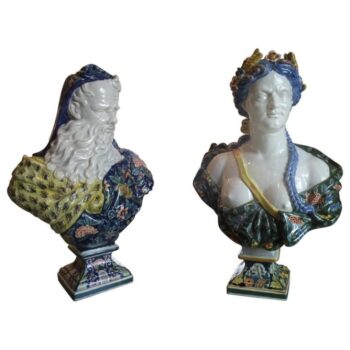 A Beautiful Pair of 19th Century Faience Of Rouen Depicting Summer and Winter.