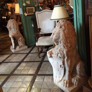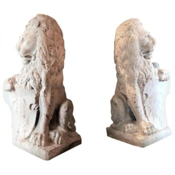 Pair 18th C. Carved Marble Terracotta Figures Lions Sculptures Garden Statues LA