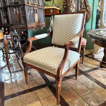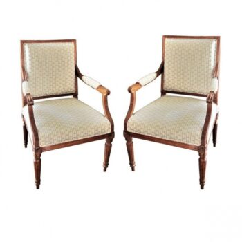 Pair Antique Armchairs Louis XVI Fauteuils in Walnut Dining Entrance Side chairs