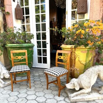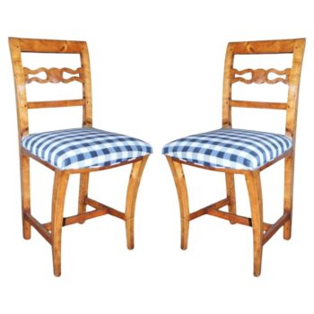 Pair 19th C. Antique Swedish Hand Carved Fruit Wood Hallway Side Chairs Rustic