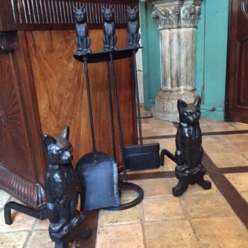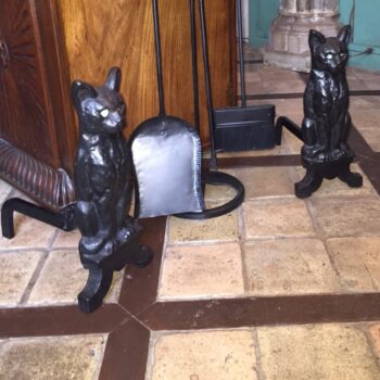 Handmade Cast Iron Fireplace Cat Andirons