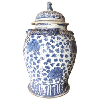 Antique Blue & White Chinese Large Lidded Temple Jar Vase Antiques Los Angeles