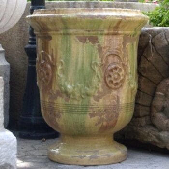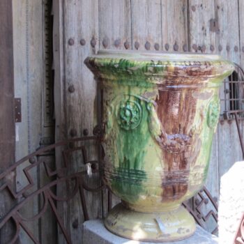 Antique French Glazed Terracotta Planter Anduze Green Color cachepot jardinière