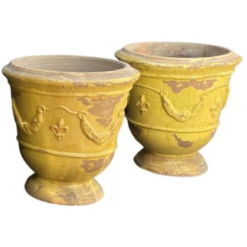 Antique French Glazed Terracotta Planter Anduze Green Color cachepot jardinière