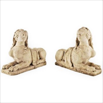 Pair 19th C. Hand Carved Stone Statues Sphinx Sculpture Garden Antiques LA CA