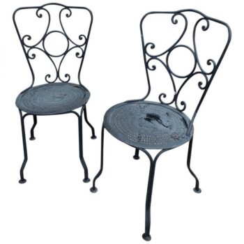 Pair of late19th Early 20th Century Side Handmade Garden Table Chairs Furniture Iron Antique LA