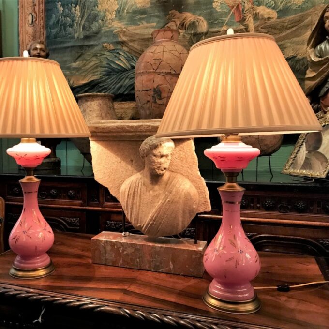 Nightstand Lights antiques . Pair of beautiful 19th century opaline opaque pink