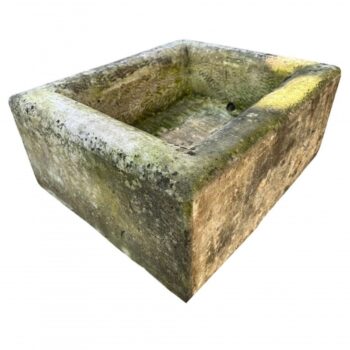 The decades left its marks and a very nice patina that changes with the seasons . This water feature will be the focal point in any landscape design commercial and residential palatial . It is a piece of art , Mounted in a traditional provincial Italian Mediterranean French Spanish context a farm or a winery . Hand crafted Stone basin trough for your Landscape design decor . A Statement piece at the front of your home , imposing Architectural decorative garden elements for your landscape .