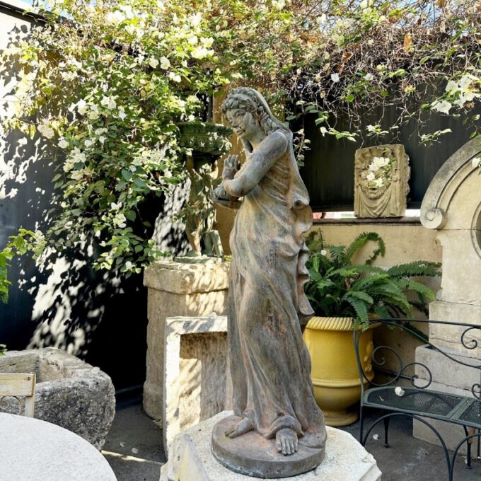 muse winter bearer holding a vase. Garden statue sculpture. These statues were