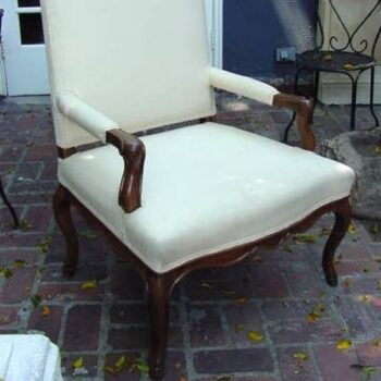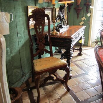 Height: 38″  Width: 22″ Depth: 17″  Pair 17th Century Louis XIII Period Dining Room side hallway Chairs hand carved . Three pairs available or a set of six chairs of the 17th century French carved walnut armchair Louis XIII of the period with handsomely turned front legs and stretchers. The chairs features later upholstery with […]