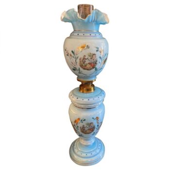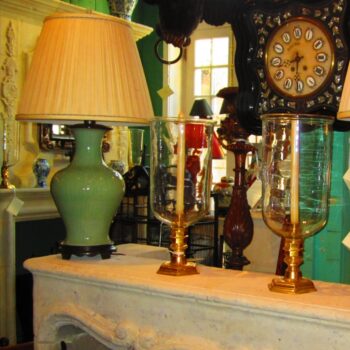 A Very beautiful pair of late 19th century Swedish cut-glass crystal Girandole candelabra. Mounted on white marble stone base candleholders. The reflection of the stem with cobalt blue glass color and the mounted bronze work is very elegant with the simple work of the Bobeche decorated with various cut crystal pendants drops with top crown crystal finial. We have seen many that were turned into electrified table lamps Antiques Dealer Los Angeles CA Beverly Hills West Hollywood Melrose ave La Cienega. This pair would be the perfect companion to you dinnerware tableware. As a special gift idea item small object to add a touch of history as an entertaining finishing touches Holiday season or a house warming gift. Decorative on a side table of bedroom nightstand, or to make it part of the biblot in a library or on top of a mantel (fireplace) or on a console in an entryway glimmering crystal girandoles Stand sentry beside the fireplace. In a Danish or Swedish design, traditional etc.